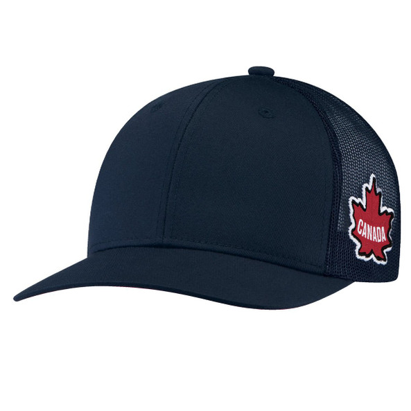 AJM 8E000M - Marine/Rouge - Polycoton / Polyester Mesh 6 Panel Constructed Pro-Round (Canada, Mesh Back)