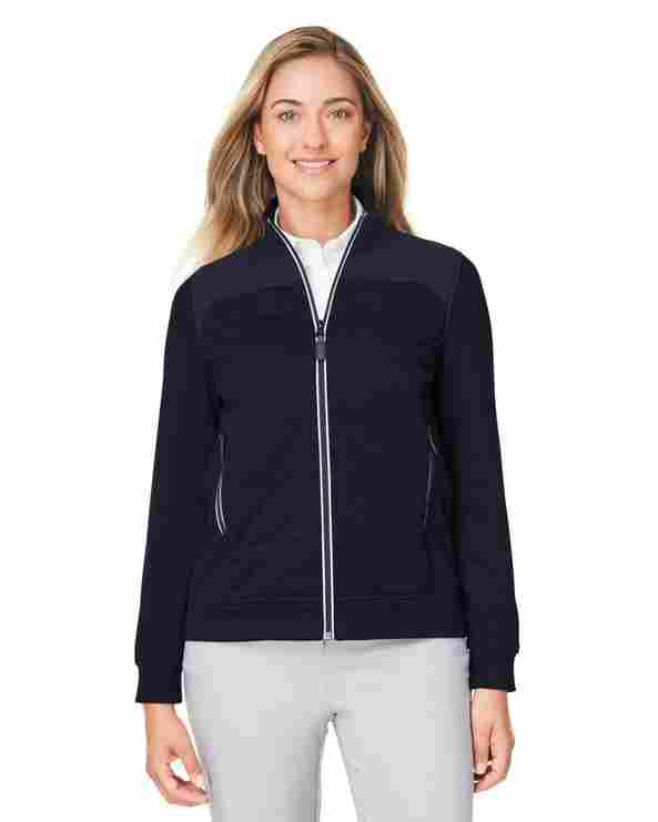 Contraste : 1 oz/yd2 / 39 g/m², 100% nylon recyclé ; Isolation : 40 g/m² de rembourrage en poly thermique dans le panneau hybride avant ; Corps : 10 oz/yd2 / 350 g/m², 70% polyester, 26% rayonne, 4% spandex tricoté ; Déperlant ; Fermeture à glissière centrale à spirale inversée avec bascules en similicuir ; Poches inférieures zippées ; Détail de bande contrastée sur les fermetures à glissière
