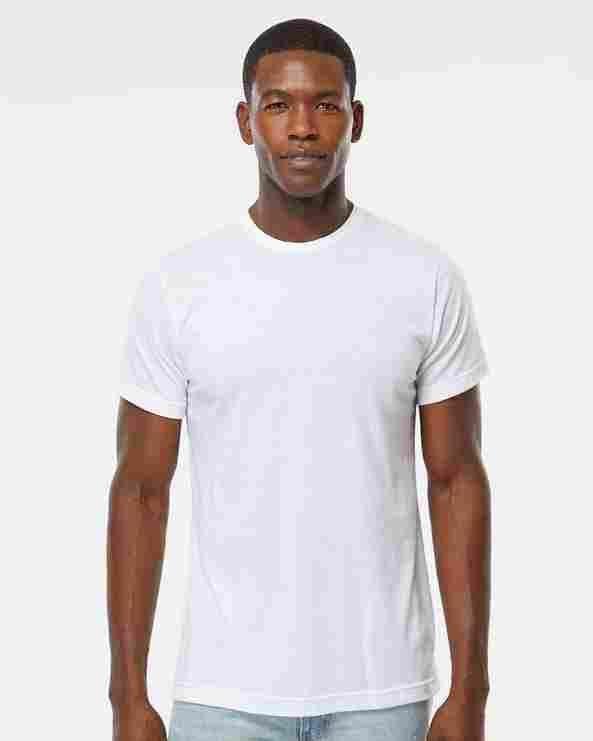 65% Polyester / 35% mélange de coton 6 oz. Douceur du filé à l’anneau. Double coutures aux manches et à la base. Couture latérale. 30 Single.