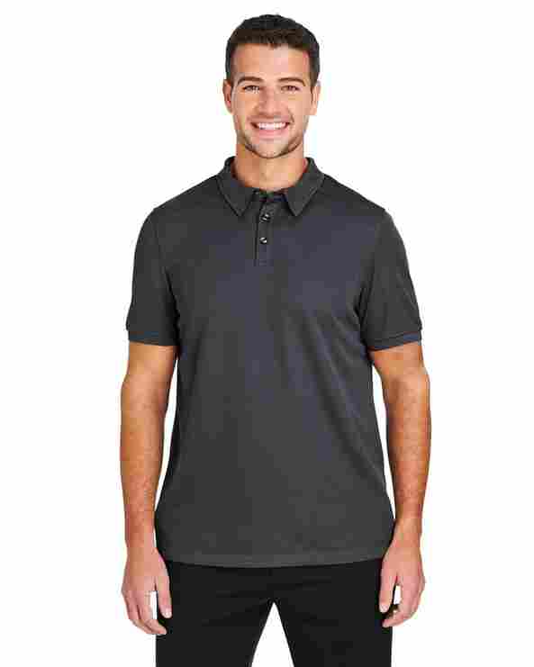 6 oz/yd² / 195 g/m², 100 % polyester recyclé Coolcore® piqué ; La technologie Coolcore® est une performance sans produits chimiques, conçue mécaniquement, qui ne s'efface pas au lavage ; évacuation de l'humidité, régulation thermique, protection contre les UV sans traitement topique ; Pratiques de fabrication de tissus durables. En savoir plus sur Coolcore.com ; Col en tissu avec baleines de col intégrées ; Poignets en tricot assortis ; Fentes latérales.