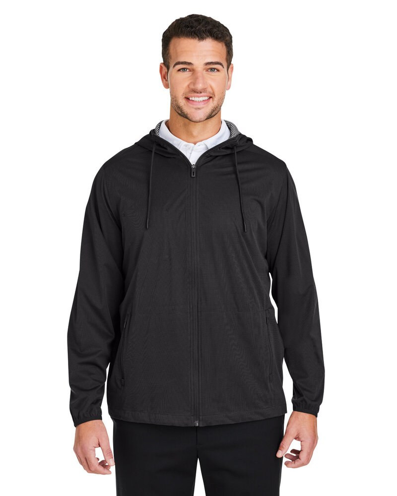 3 000 g de respirabilité ; 3 000 mm d'imperméabilité ; corps : 3 oz/yd² / 94 g/m², 67 % polyester cationique, 33 % polyester recyclé, tricot texturé ; doublure : 95 % polyester, 5 % spandex, doublure en jersey imprimé dans la capuche ; cordon de serrage avec œillets dans la capuche ; fermeture à glissière inversée au centre du devant ; bordures en lycra assorties aux poignets ; poche intérieure sur la poitrine droite ; poches inférieures avec fermeture à glissière.
